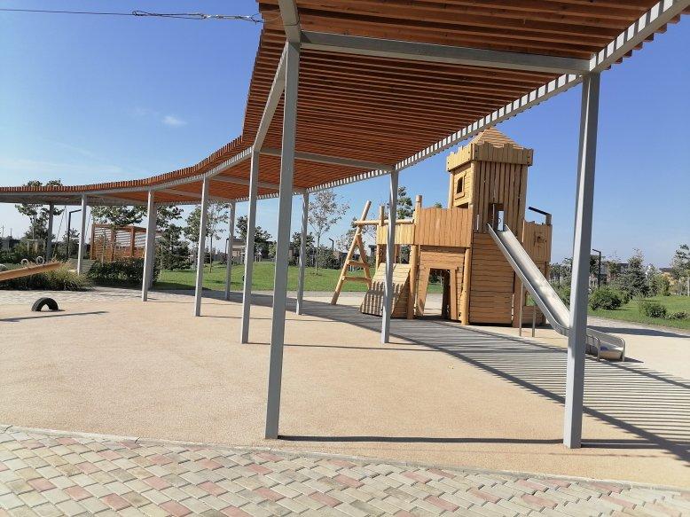 Парк, своё озеро с набережной и ресторанами с видом на воду. Благоустроена территория возле дома, удобные детские площадки для детей разного возраста.