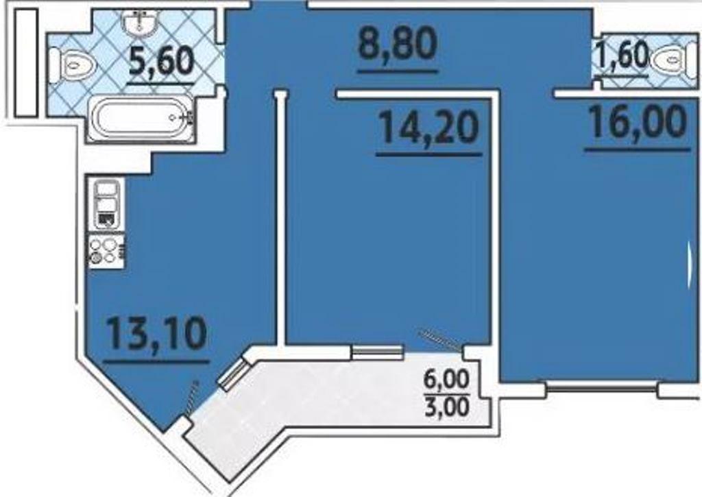 Продается 2-х комн. новостройка, 63 кв.м., 20/22 эт