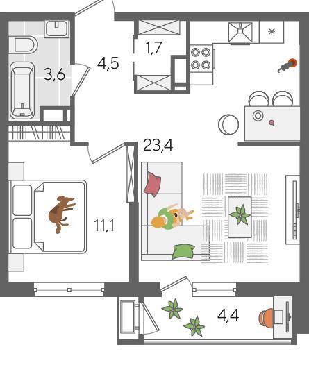 Продается однокомнатная новостройка, 48.7 кв.м., 19/24 эт