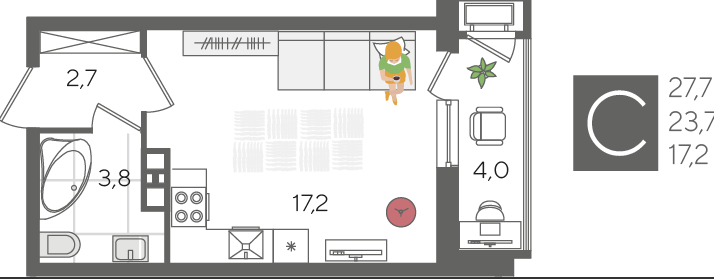 Продается Студия новостройка, 27.7 кв.м., 14/24 эт