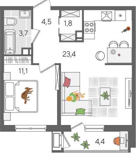 | Жилая площадь | 11.1 |
