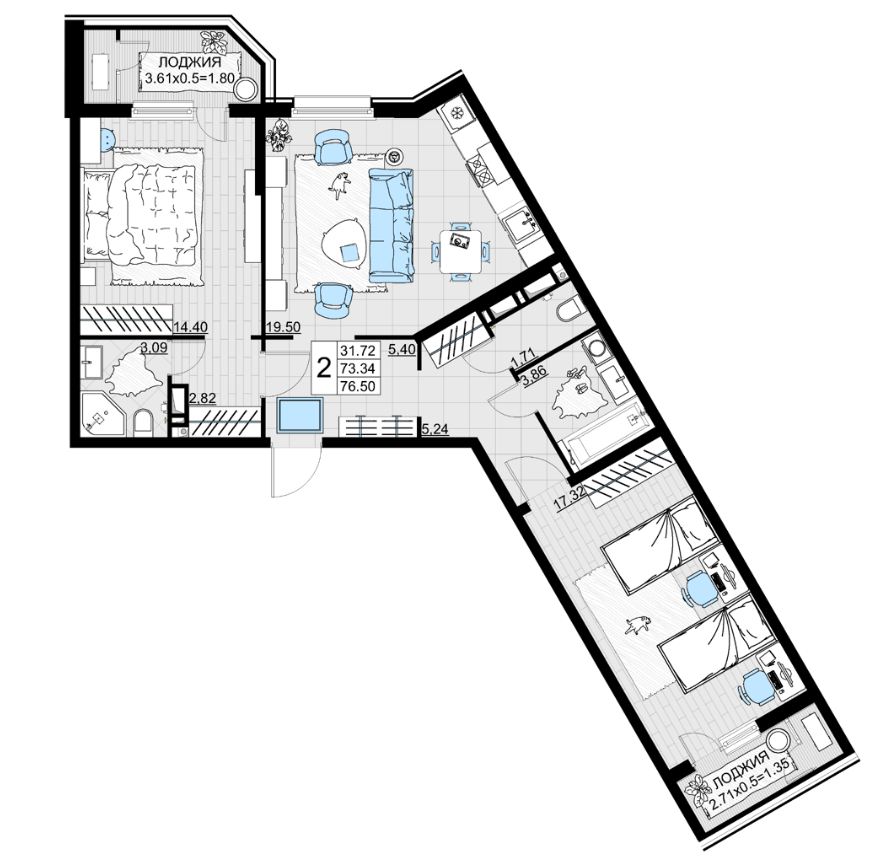 Продается 2-х комн. новостройка, 76.5 кв.м., 10/18 эт