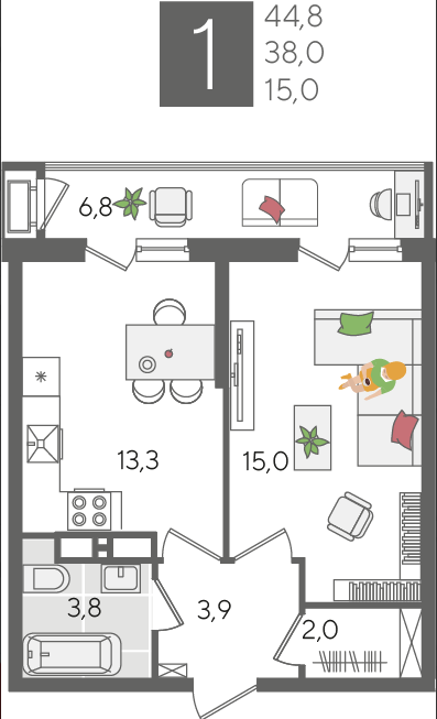 | Площадь, кв.м. | 44.8 |