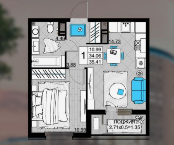 Продается однокомнатная новостройка, 35.41 кв.м., 11/24 эт