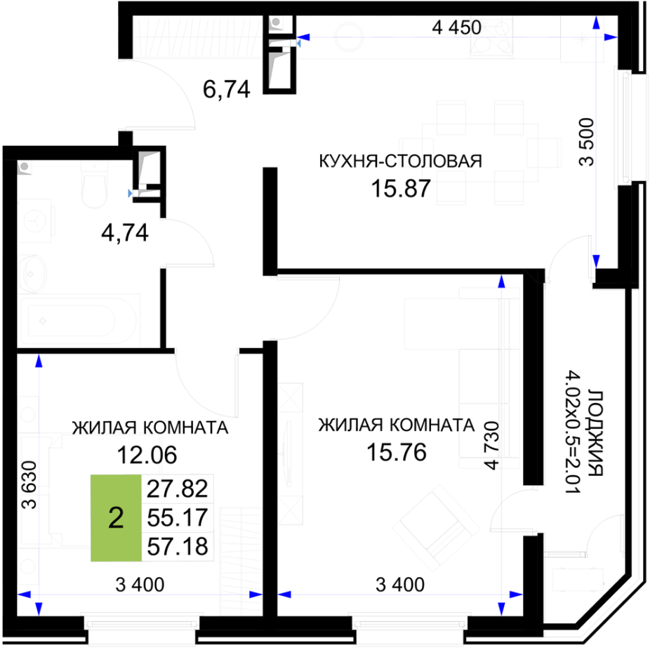 | Площадь, кв.м. | 57.18 |