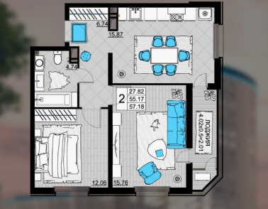 Продается 2-х комн. новостройка, 57.18 кв.м., 10/24 эт