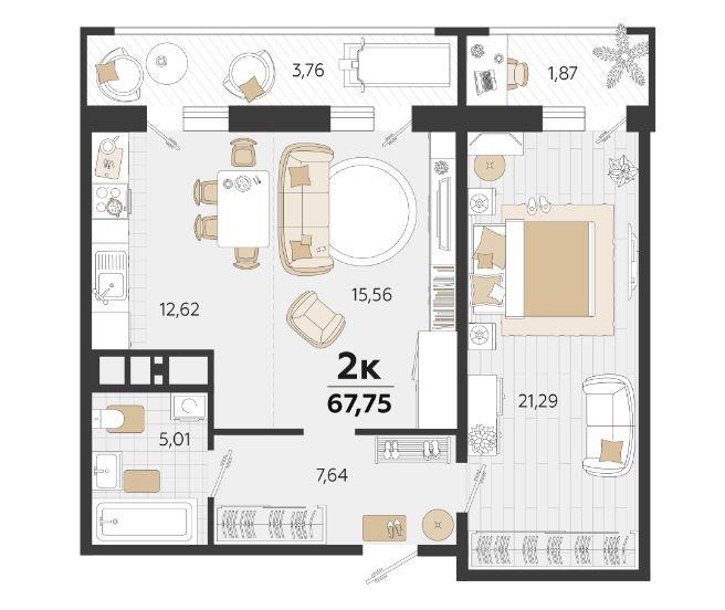 Продается 2-х комн. новостройка, 67 кв.м., 15/24 эт