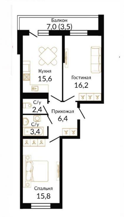 | Площадь кухни, кв.м. | 15.6 |
