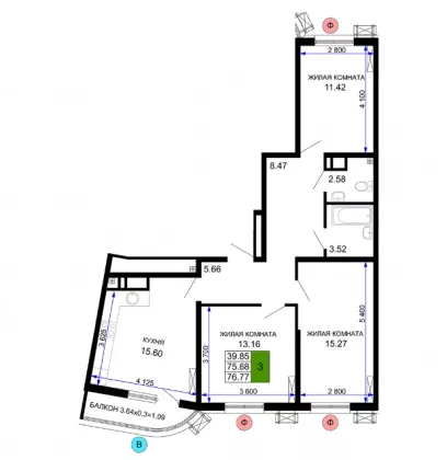| Комнат в квартире | 3 |