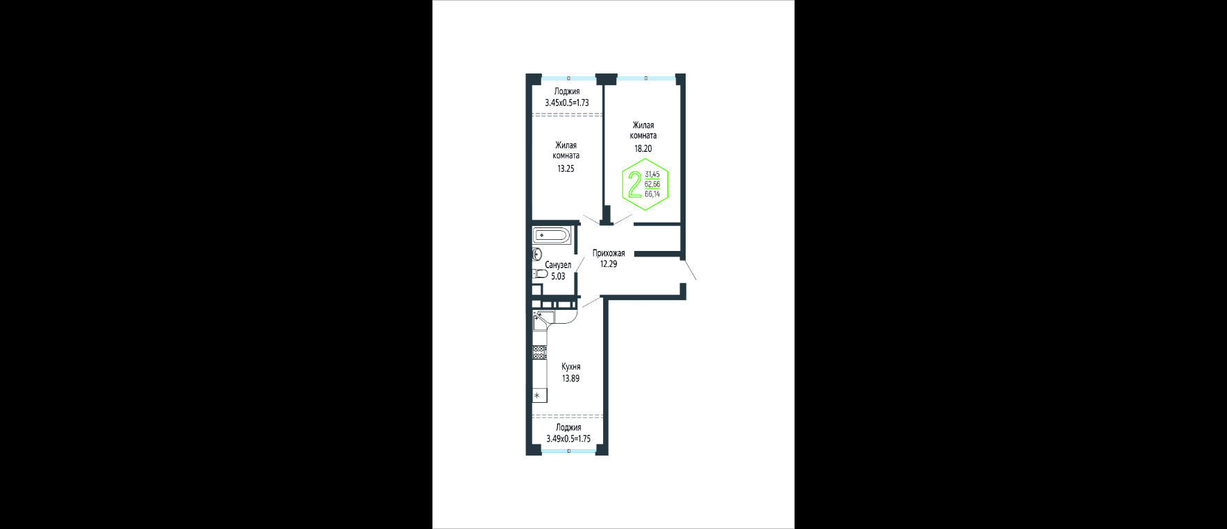 Продается 2-х комн. новостройка, 66 кв.м., 7/24 эт