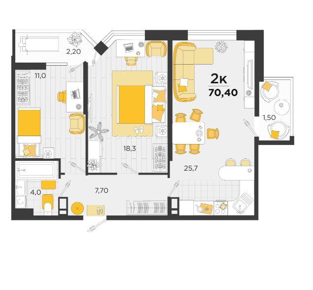 Продается 2-х комн. новостройка, 70.4 кв.м., 10/25 эт