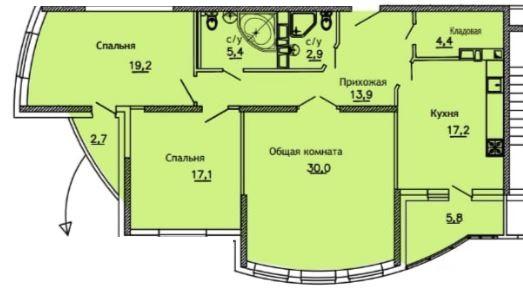 Продается 2-х комн. новостройка, 119.3 кв.м., 11/19 эт