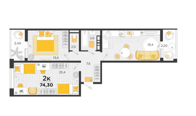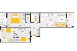 Продается 2-х комн. новостройка, 74.3 кв.м., 11/24 эт
