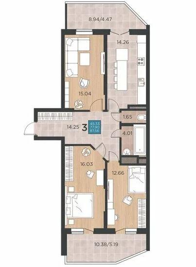 Продается 3-х комн. новостройка, 87.5 кв.м., 10/17 эт