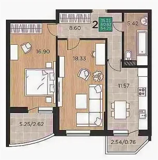 Продается 2-х комн. новостройка, 64.2 кв.м., 11/17 эт