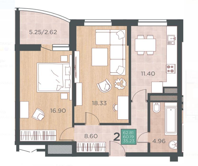 Продается 2-х комн. новостройка, 62.8 кв.м., 11/17 эт