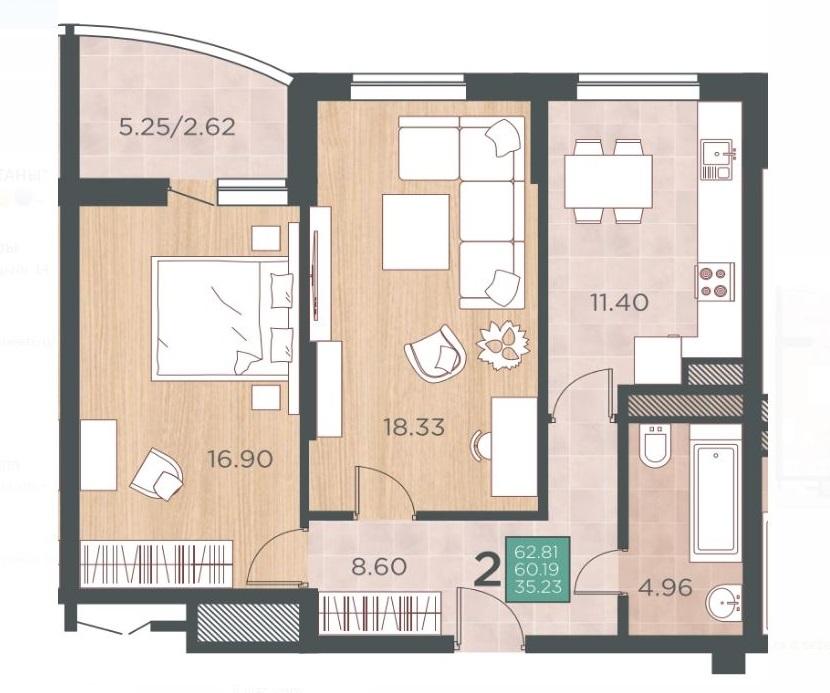 Продается 2-х комн. новостройка, 62.8 кв.м., 13/17 эт