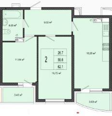 Продается 2-х комн. новостройка, 62.1 кв.м., 9/19 эт