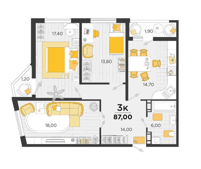 Продается 3-х комн. новостройка, 87 кв.м., 9/24 эт