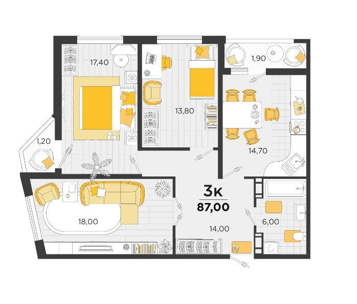 Продается 3-х комн. новостройка, 87 кв.м., 14/24 эт