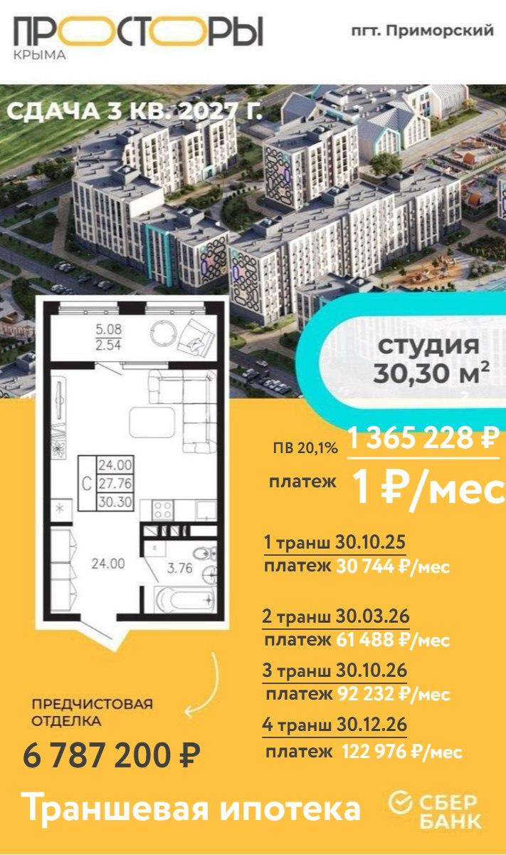 Цена указанна с условием покупки по программе траншевая ипотека.
