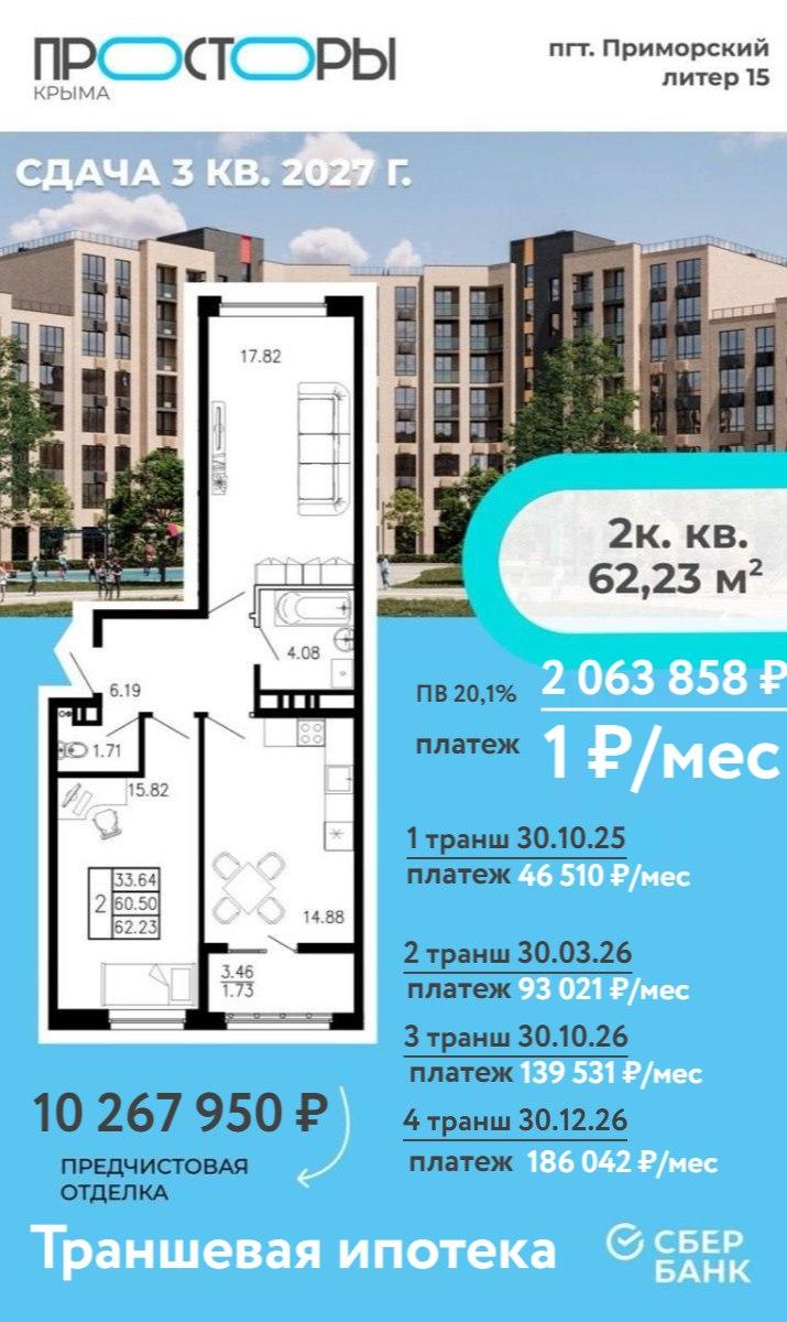 Цена указанна с условием покупки по программе траншевая ипотека.