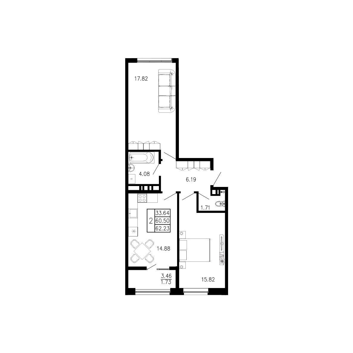 Продается 2-х комн. новостройка, 62.23 кв.м., 3/8 эт
