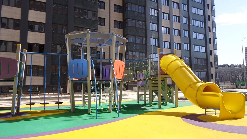 Закрытая территория всего комплекса, во дворе видеонаблюдение, собственный парк, собственный детский сад ,спортивные и игровые площадки.