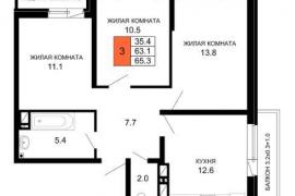Продается 3-х комн. новостройка, 65.3 кв.м., 9/16 эт