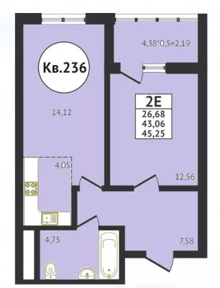 Продается 3-х комн. новостройка, 45.3 кв.м., 6/17 эт