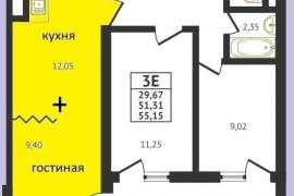 Продается 3-х комн. новостройка, 55.54 кв.м., 7/17 эт