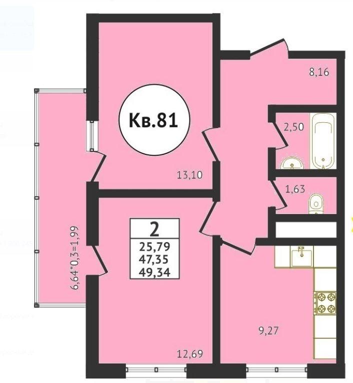 Продается 3-х комн. новостройка, 49.3 кв.м., 6/17 эт