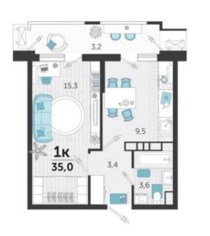 Продается однокомнатная новостройка, 35 кв.м., 19/24 эт