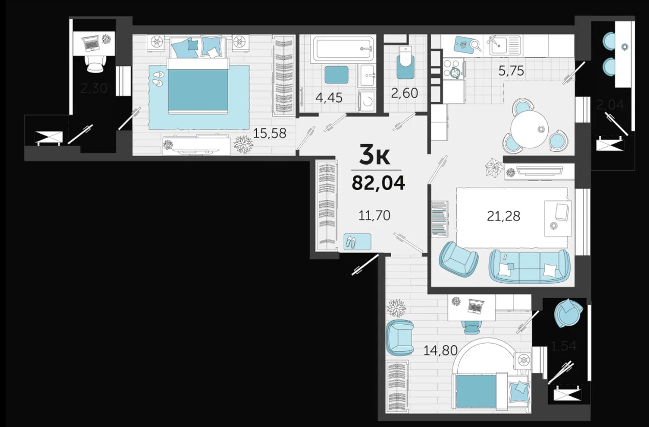 Продается 3-х комн. новостройка, 82.5 кв.м., 21/24 эт