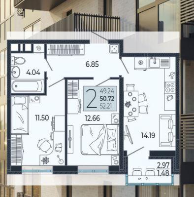 Продается 2-х комн. новостройка, 50.72 кв.м., 11/21 эт