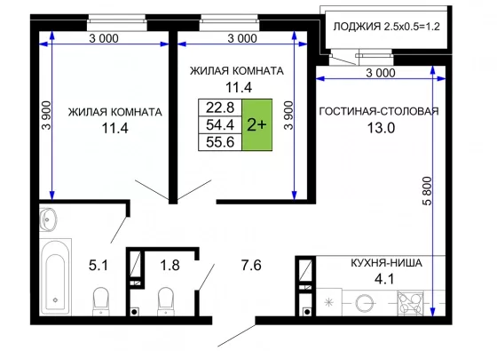 Продается 2-х комн. новостройка, 55.6 кв.м., 12/16 эт