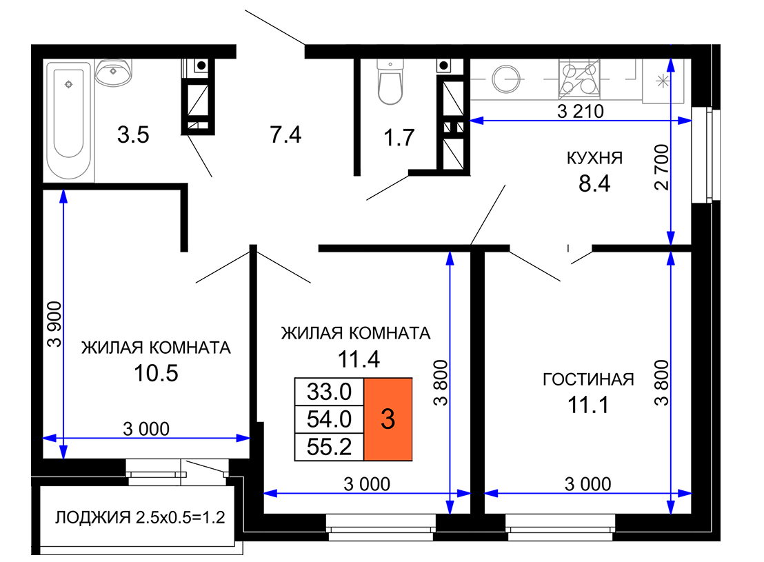 Продается 2-х комн. новостройка, 55.2 кв.м., 11/16 эт
