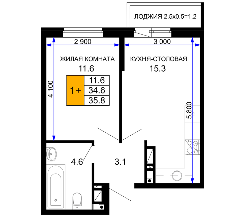 Продается однокомнатная новостройка, 35.8 кв.м., 8/16 эт