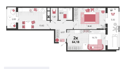 Продается 2-х комн. новостройка, 64.18 кв.м., 12/18 эт