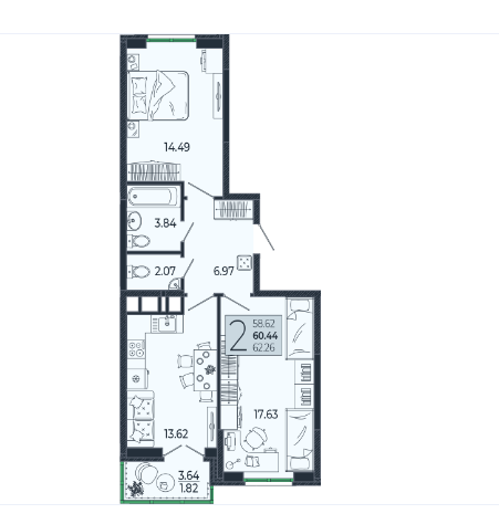 Продается 2-х комн. новостройка, 62.26 кв.м., 18/21 эт