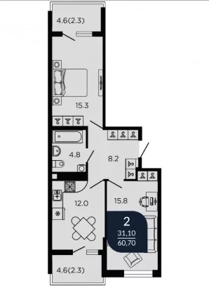 Квартира в современном жилом комплексе, двухкомнатная, в сданном доме от подрядчика! Проходят все гос. программы! Открытие ипотеки любой сложности!