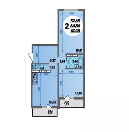 Продается 2-х комн. новостройка, 67.48 кв.м., 11/16 эт