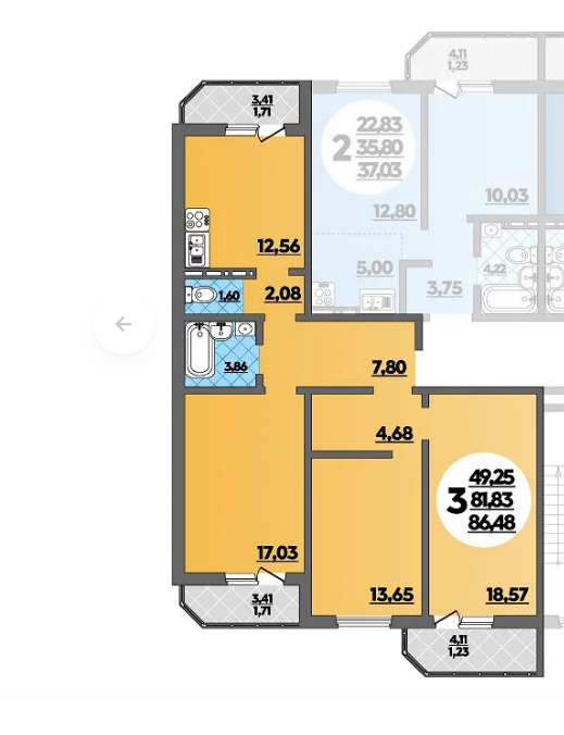 Продается 3-х комн. новостройка, 86.48 кв.м., 11/16 эт