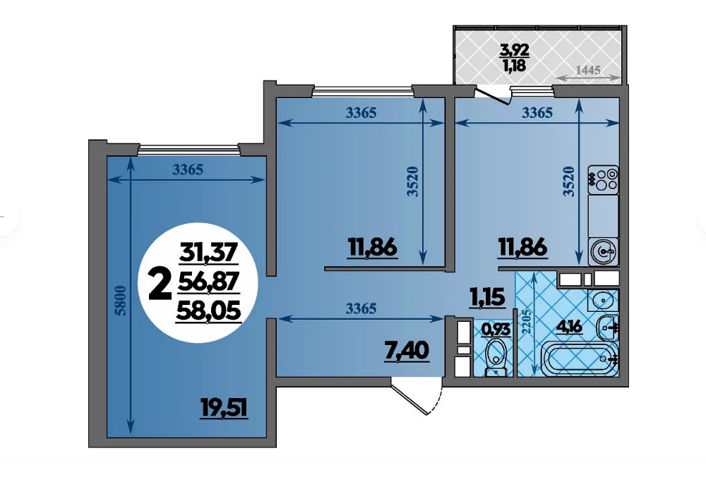 | Площадь, кв.м. | 58.05 |