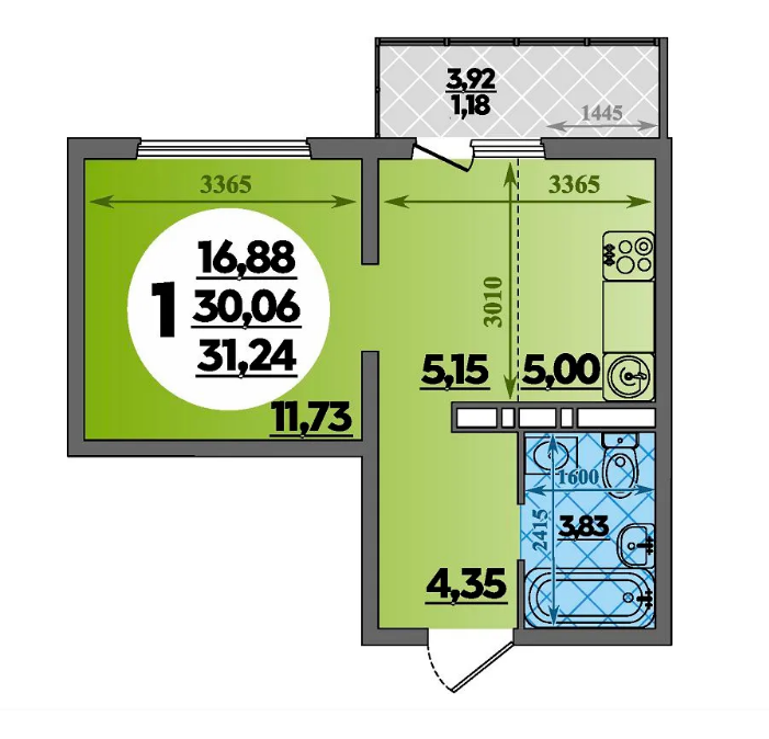 Продается однокомнатная новостройка, 31.24 кв.м., 6/16 эт