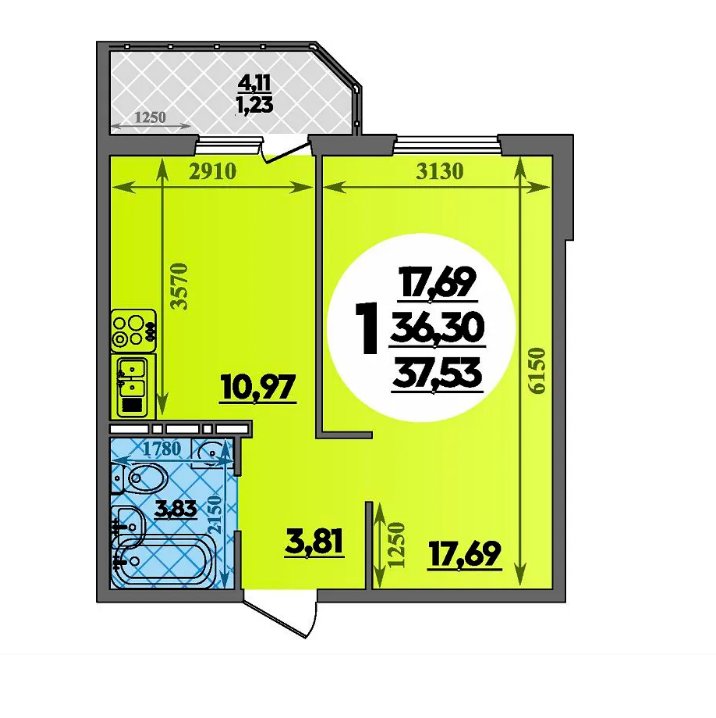 Продается однокомнатная новостройка, 37.53 кв.м., 11/16 эт
