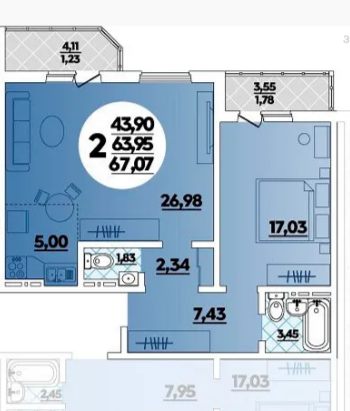 Продается 2-х комн. новостройка, 67.07 кв.м., 12/16 эт