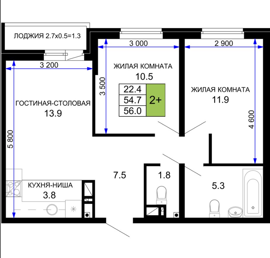 Продается 3-х комн. новостройка, 56 кв.м., 11/16 эт