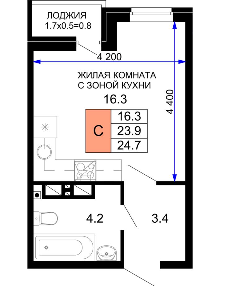 Продается 3-х комн. новостройка, 24.7 кв.м., 11/16 эт