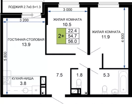 | Площадь, кв.м. | 56 |